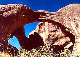 Innerhalb des Arches Nationalparks gibt es weder Unterkunfts- noch Verpflegungsm�glichkeiten. In der benachbarten Stadt Moab findet man mehrere Motels, Restaurants sowie Lebensmittelgesch�fte; diese Einrichtungen sind das ganze Jahr in Betrieb.�Zu beachten ist: Moab liegt �ber 50 km vom Devils Garden-Campingplatz entfernt. | ||||||